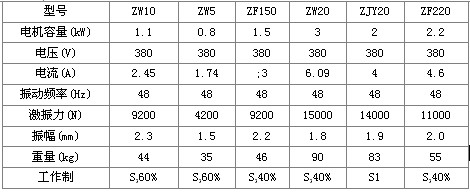 4. 獨(dú)特的偏心結(jié)構(gòu),對(duì)稱地分布在軸承外側(cè);其中ZW10、ZF150、ZF220、ZW20型可根據(jù)施工情況調(diào)整激振力大小。